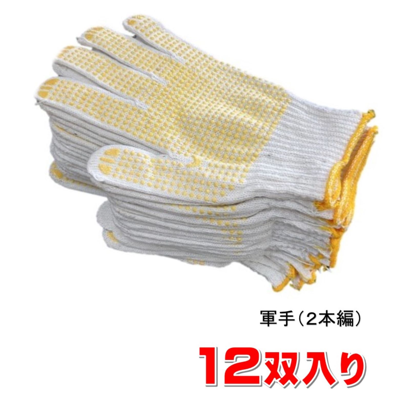 軽作業 軍手 すべり止め軍手 フリーサイズ イエロー 12双入 約600g